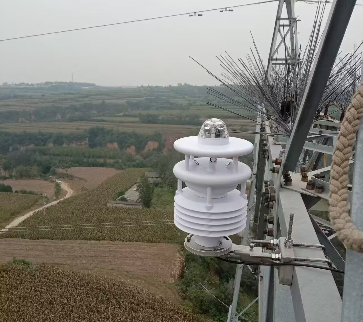 装置核心就在于“数据算得准、图像看得清”。像给导线装了“体检仪”——高精度拉力传感器捕捉导线荷载变化,倾角传感器记录导线倾斜角度,再结合温湿度、风速等微气象数据,通过方程精准算出覆冰厚度和密。